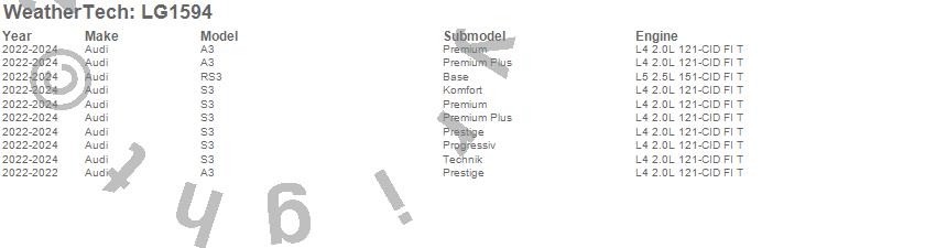 Below is an abbreviated list of applications for the LampGard.A3, A3 Quattro, RS3, S3, Audi, 2026, 2025, 2024, 2023, 2022