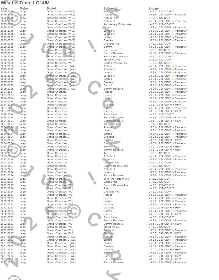 Below is an abbreviated list of applications for the LampGard.Grand Cherokee, Grand Cherokee (WK2), Grand Cherokee (WL), Grand Cherokee L, Grand Cherokee L (WL), Jeep, 2025, 2024, 2023, 2022, 2021