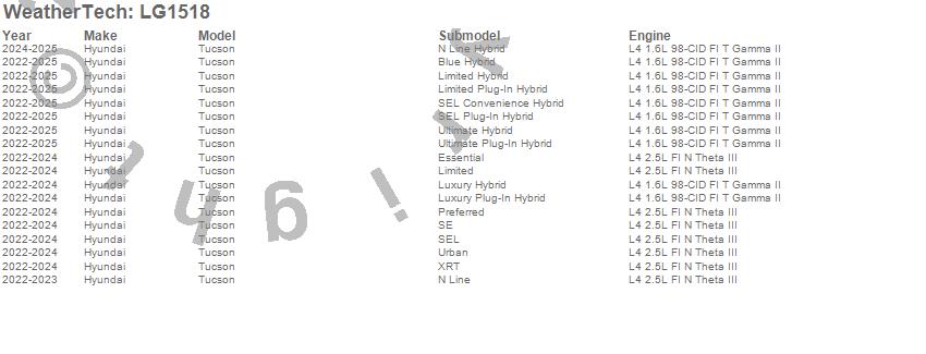 Below is an abbreviated list of applications for the LampGard.Tucson, Hyundai, 2024, 2023, 2022