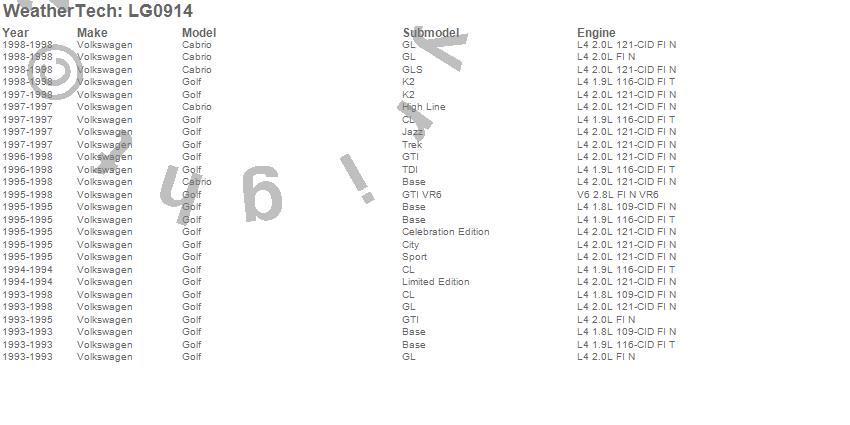 Below is an abbreviated list of applications for the LampGard.Cabrio, Golf, Volkswagen, 1998, 1997, 1996, 1995, 1994, 1993