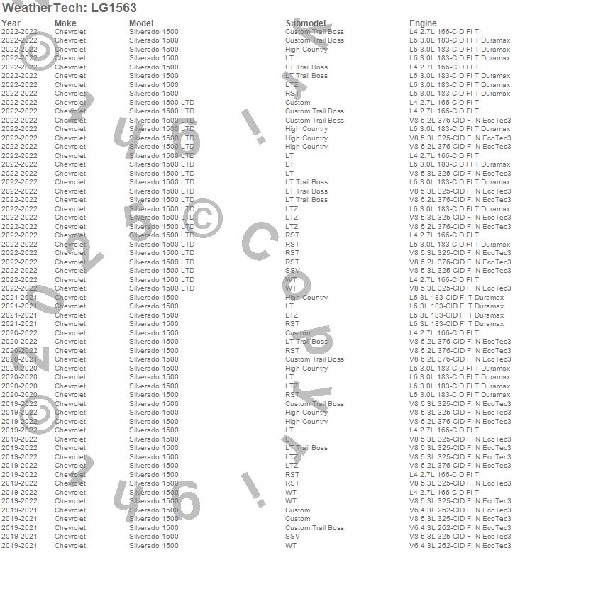 Below is an abbreviated list of applications for the LampGard.Silverado 1500, Silverado 1500 LTD, Chevrolet, 2022, 2021, 2020, 2019