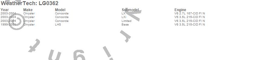 Below is an abbreviated list of applications for the LampGard.Concorde, LHS, Chrysler, 2004, 2003, 2001, 2000, 1999
