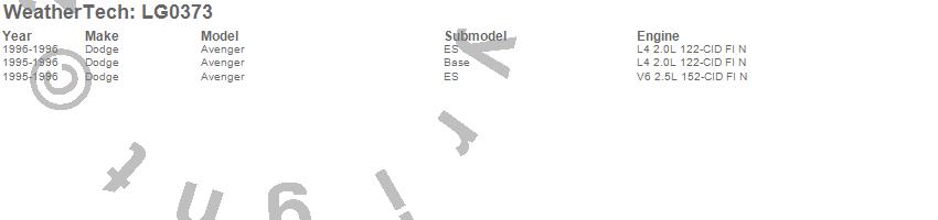 Below is an abbreviated list of applications for the LampGard.Avenger, Dodge, 1996, 1995