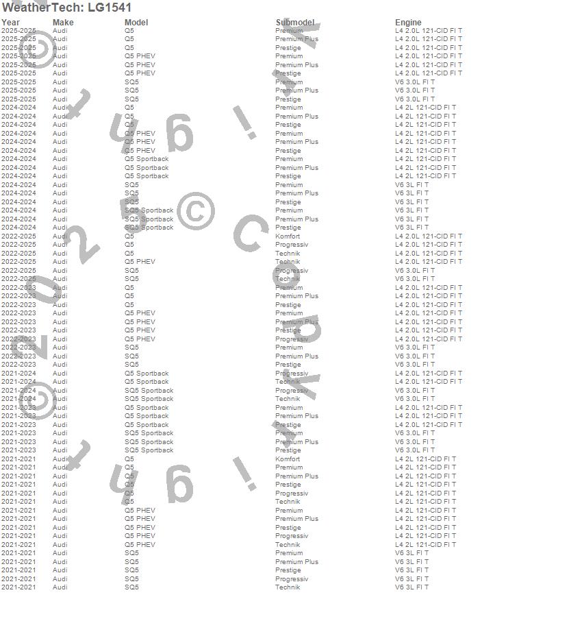 Below is an abbreviated list of applications for the LampGard.Q5, Q5 Sportback, SQ5, SQ5 Sportback, Audi, 2025, 2024, 2023, 2022, 2021