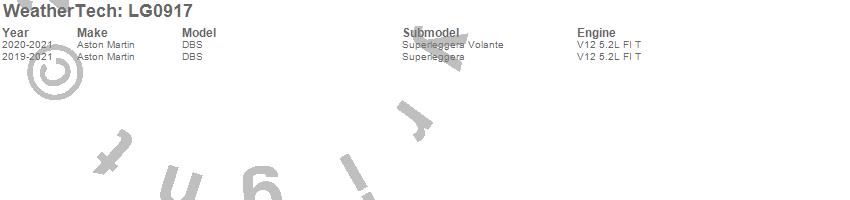 Below is an abbreviated list of applications for the LampGard.DBS, Aston Martin, 2021, 2020, 2019