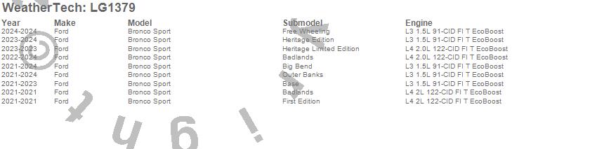 Below is an abbreviated list of applications for the LampGard.Bronco Sport, Ford, 2025, 2024, 2023, 2022, 2021