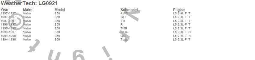 Below is an abbreviated list of applications for the LampGard.850, Volvo, 1997, 1996, 1995, 1994