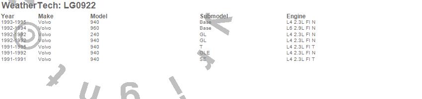 Below is an abbreviated list of applications for the LampGard.240, 940, 960, Volvo, 1995, 1994, 1993, 1992, 1991