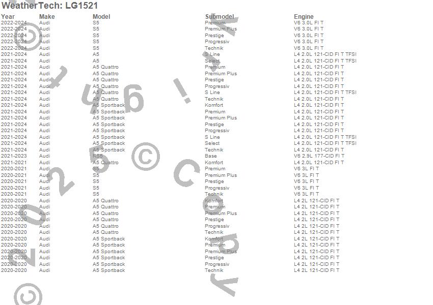 Below is an abbreviated list of applications for the LampGard.A5, A5 Quattro, A5 Sportback, RS5, RS5 Sportback, S5, S5 Sportback, Audi, 2025, 2024, 2023, 2022, 2021, 2020