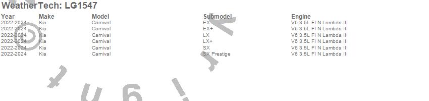 Below is an abbreviated list of applications for the LampGard.Carnival, Kia, 2024, 2023, 2022