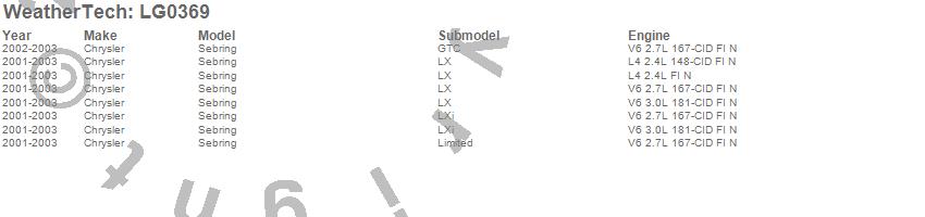 Below is an abbreviated list of applications for the LampGard.Sebring, Chrysler, 2003, 2002, 2001