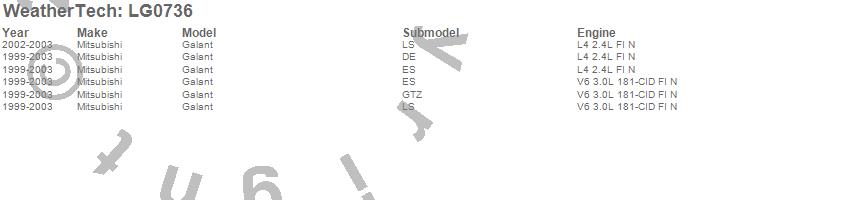 Below is an abbreviated list of applications for the LampGard.Galant, Mitsubishi, 2003, 2002, 2001, 2000, 1999