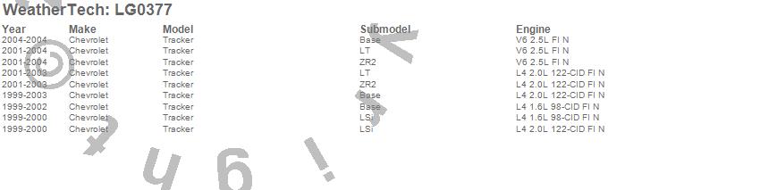 Below is an abbreviated list of applications for the LampGard.Tracker, Chevrolet, 2004, 2003, 2002, 2001, 2000, 1999