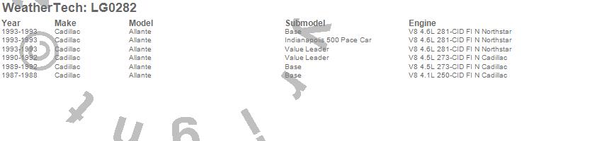 Below is an abbreviated list of applications for the LampGard.Allante, Cadillac, 1993, 1992, 1991, 1990, 1989, 1988, 1987