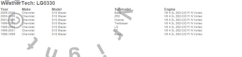 Below is an abbreviated list of applications for the LampGard.S10 Blazer, Chevrolet, 2005, 2004, 2003, 2002, 2001, 2000, 1999, 1998