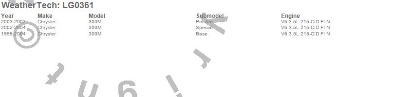Below is an abbreviated list of applications for the LampGard.300M, Chrysler, 2004, 2003, 2002, 2001, 2000, 1999