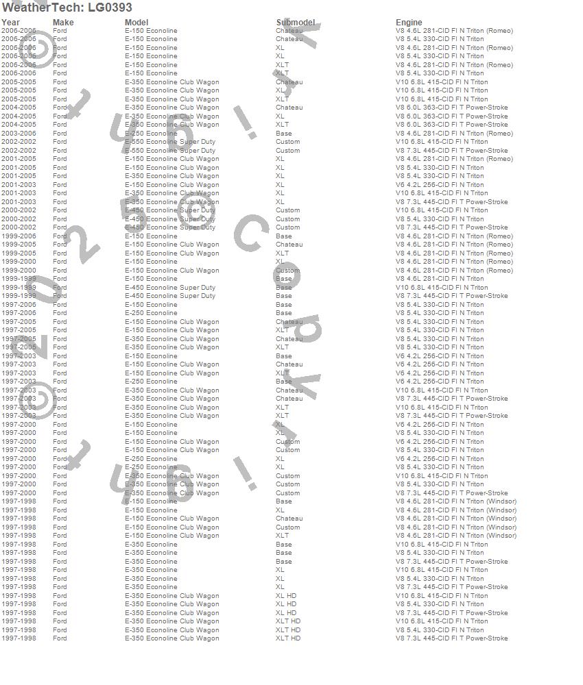 Below is an abbreviated list of applications for the LampGard.E-150 Econoline, E-150 Econoline Club Wagon, E-250 Econoline, E-350 Econoline, E-350 Econoline Club Wagon, E-450 Econoline Super Duty, E-550 Econoline Super Duty, Ford, 2006, 2005, 2004, 2003, 2002, 2001, 2000, 1999, 1998, 1997