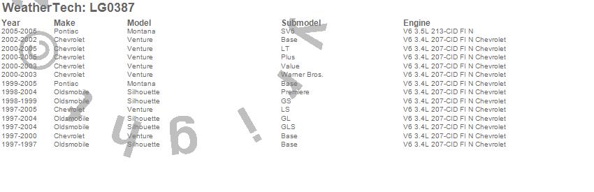 Below is an abbreviated list of applications for the LampGard.Montana, Silhouette, Venture, Chevrolet, Oldsmobile, Pontiac, 2005, 2004, 2003, 2002, 2001, 2000, 1999, 1998, 1997