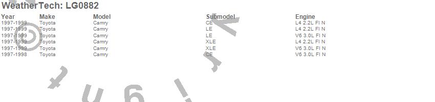 Below is an abbreviated list of applications for the LampGard.Camry, Toyota, 1999, 1998, 1997