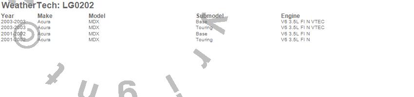 Below is an abbreviated list of applications for the LampGard.MDX, Acura, 2003, 2002, 2001