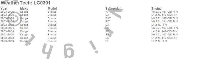 Below is an abbreviated list of applications for the LampGard.Stratus, Dodge, 2006, 2005, 2004, 2003