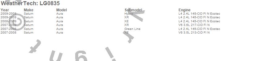Below is an abbreviated list of applications for the LampGard.Aura, Saturn, 2009, 2008, 2007