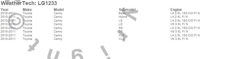 Below is an abbreviated list of applications for the LampGard.Camry, Toyota, 2011, 2010