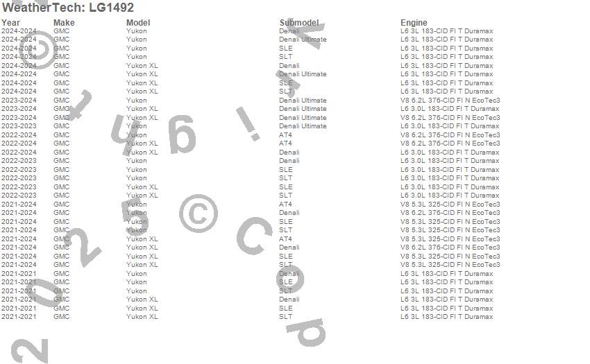 Below is an abbreviated list of applications for the LampGard.Yukon, Yukon XL, GMC, 2024, 2023, 2022, 2021