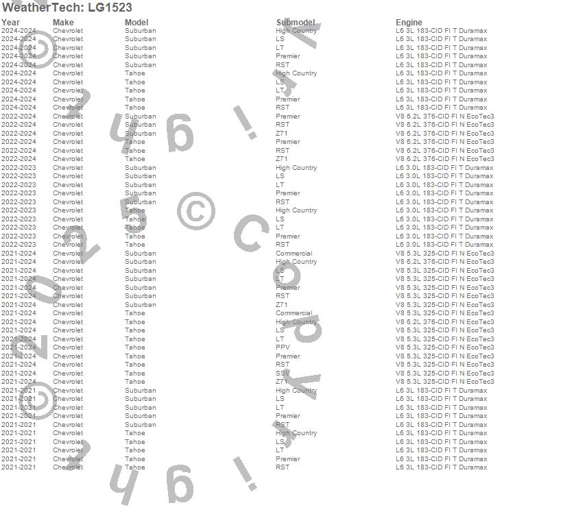 Below is an abbreviated list of applications for the LampGard.Suburban, Tahoe, Chevrolet, 2024, 2023, 2022, 2021