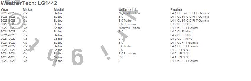 Below is an abbreviated list of applications for the LampGard.Seltos, Kia, 2023, 2022, 2021