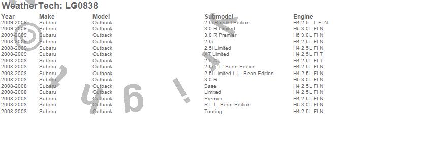 Below is an abbreviated list of applications for the LampGard.Outback, Subaru, 2009, 2008