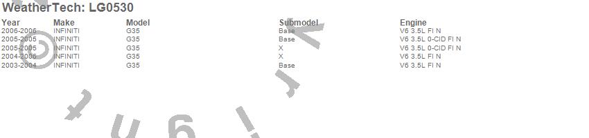 Below is an abbreviated list of applications for the LampGard.G35, INFINITI, 2006, 2005, 2004, 2003