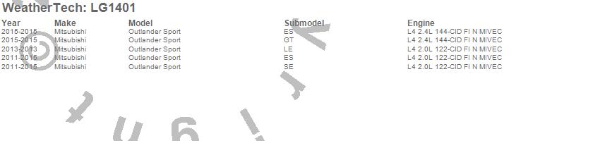 Below is an abbreviated list of applications for the LampGard.Outlander Sport, Mitsubishi, 2015, 2014, 2013, 2012, 2011
