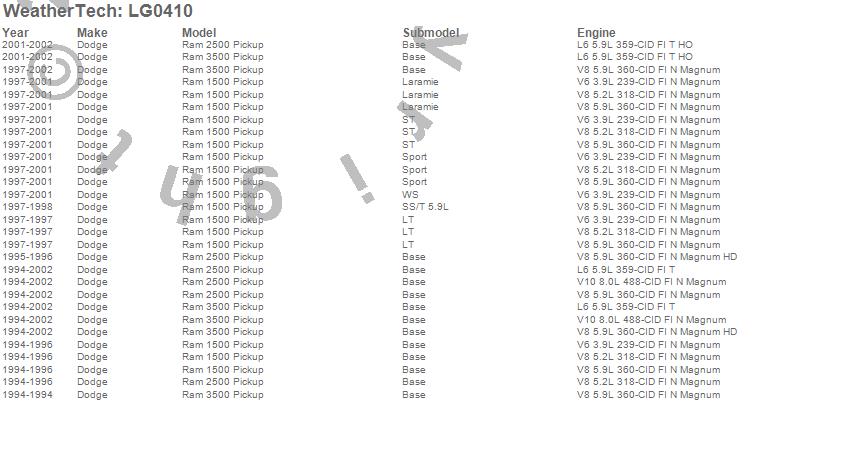 Below is an abbreviated list of applications for the LampGard.Ram 1500, Ram 2500, Ram 3500, Dodge, 2002, 2001, 2000, 1999, 1998, 1997, 1996, 1995, 1994
