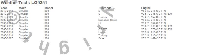 Below is an abbreviated list of applications for the LampGard.300, Chrysler, 2010, 2009, 2008, 2007, 2006, 2005