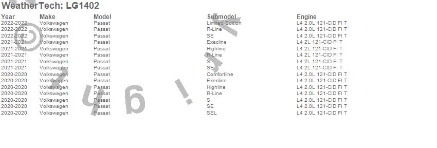 Below is an abbreviated list of applications for the LampGard.Passat, Volkswagen, 2022, 2021, 2020