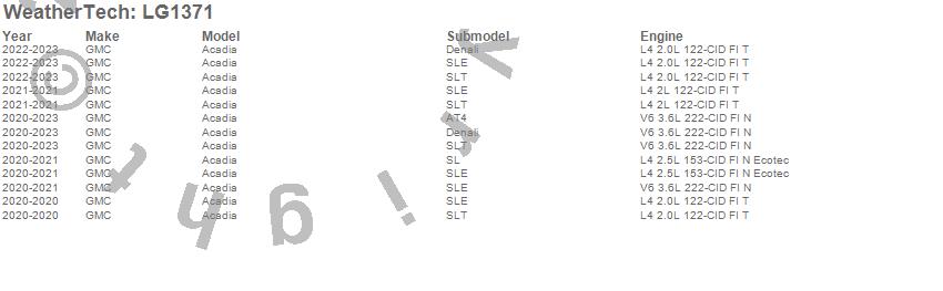 Below is an abbreviated list of applications for the LampGard.Acadia, GMC, 2023, 2022, 2021, 2020