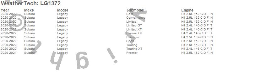 Below is an abbreviated list of applications for the LampGard.Legacy, Subaru, 2022, 2021, 2020