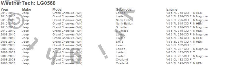 Below is an abbreviated list of applications for the LampGard.Grand Cherokee (WK), Jeep, 2010, 2009, 2008