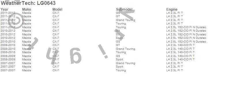 Below is an abbreviated list of applications for the LampGard.CX-7, Mazda, 2012, 2011, 2010, 2009, 2008, 2007