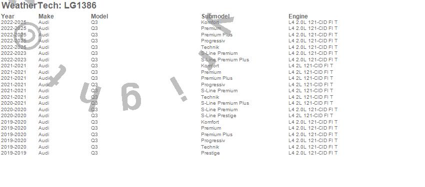 Below is an abbreviated list of applications for the LampGard.Q3, Audi, 2025, 2024, 2023, 2022, 2021, 2020, 2019