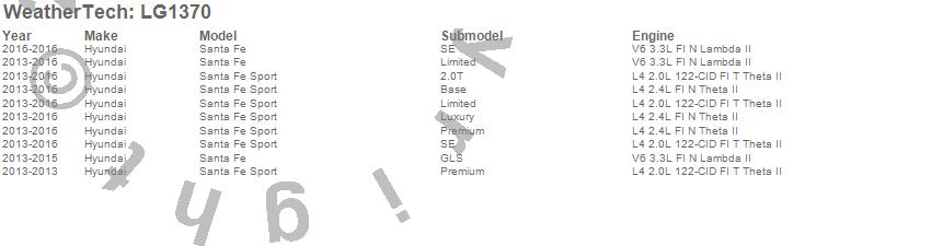 Below is an abbreviated list of applications for the LampGard.Santa Fe, Santa Fe Sport, Hyundai, 2016, 2015, 2014, 2013