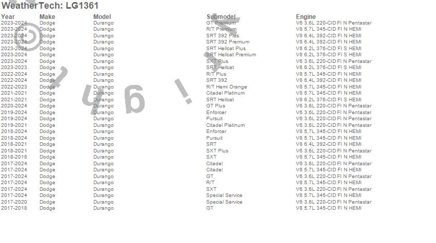 Below is an abbreviated list of applications for the LampGard.Durango, Dodge, 2024, 2023, 2022, 2021, 2020, 2019, 2018, 2017