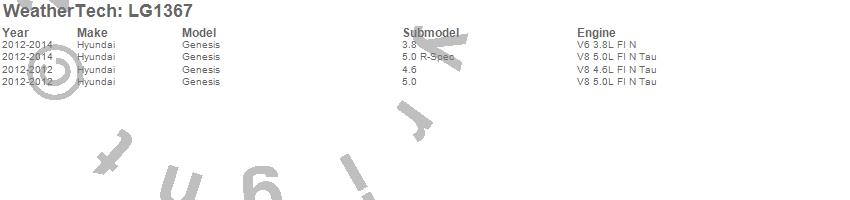 Below is an abbreviated list of applications for the LampGard.Genesis, Hyundai, 2014, 2013, 2012