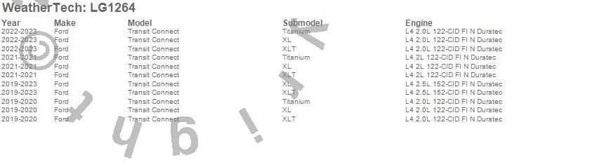 Below is an abbreviated list of applications for the LampGard.Transit Connect, Ford, 2023, 2022, 2021, 2020, 2019