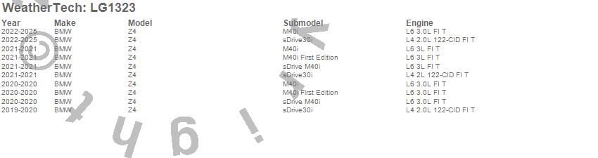 Below is an abbreviated list of applications for the LampGard.Z4, BMW, 2025, 2024, 2023, 2022, 2021, 2020, 2019