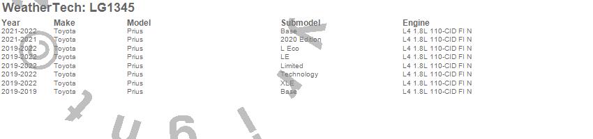 Below is an abbreviated list of applications for the LampGard.Prius, Toyota, 2022, 2021, 2020, 2019