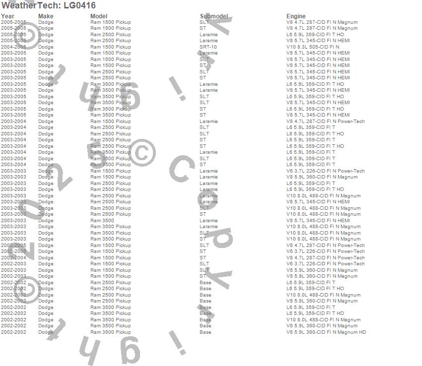 Below is an abbreviated list of applications for the LampGard.Ram 1500, Ram 2500, Ram 3500, Dodge, 2005, 2004, 2003, 2002