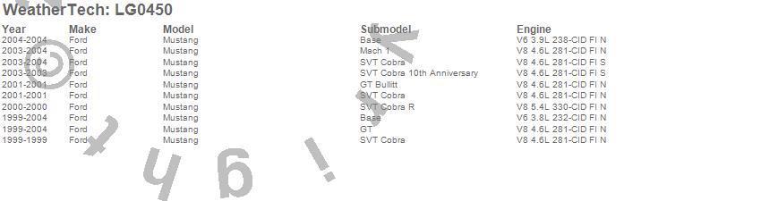 Below is an abbreviated list of applications for the LampGard.Mustang, Ford, 2004, 2003, 2002, 2001, 2000, 1999