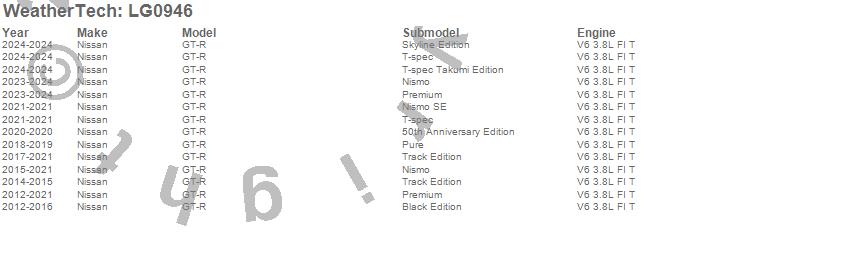 Below is an abbreviated list of applications for the LampGard.GT-R, Nissan, 2024, 2023, 2021, 2020, 2019, 2018, 2017, 2016, 2015, 2014, 2013, 2012
